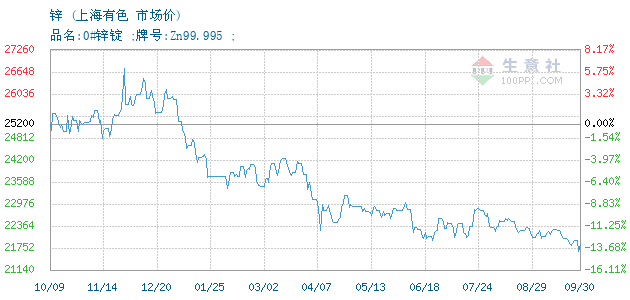 06月17日上海有色锌为22030元