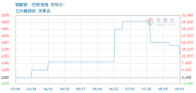 06月18日巴陵恒逸硫酸铵为1250元