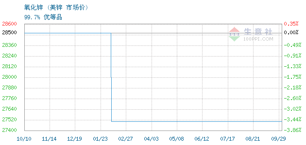 06月18日美锌关于氧化锌的报价为27500元/吨。氧化锌的规格:99.7% 优等品。该报价有效期为3天。报价提供方:苏州化原化工有限公司。
