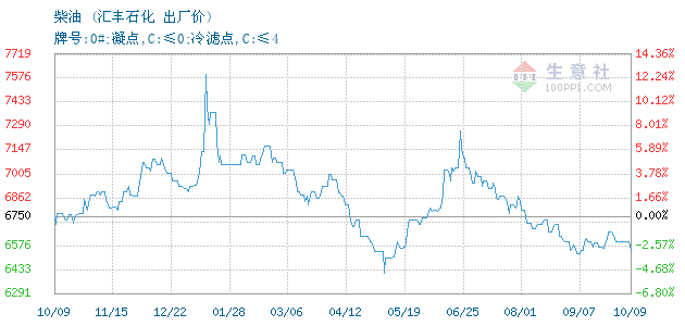 06月23日汇丰石化柴油为7260元