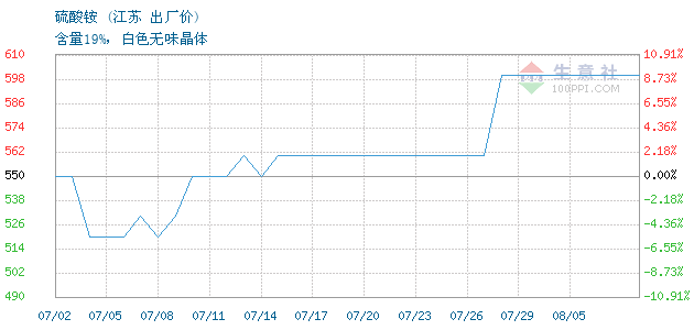 07月03日江苏关于硫酸铵的报价为500元/吨。硫酸铵的规格:含量19%,白色无味晶体。该报价有效期为1天。报价提供方:济南鸿仪生物科技有限公司。