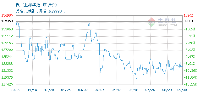 07月08日上海华通有色金属现货市场关于镍的报价为121150元/吨。镍的规格:品名:1#镍 ;牌号:Ni9990 ;。该报价有效期为7天。报价提供方:上海华通有色金属现货市场。