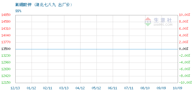 07月09日湖北七八九氟硼酸钾为13500元