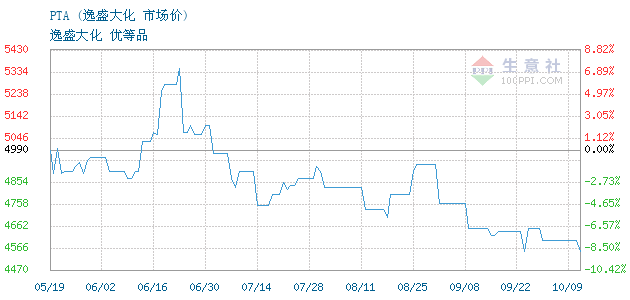 07月09日逸盛大化关于PTA的报价为4900元/吨。PTA的规格:逸盛大化 优等品 。该报价有效期为1天。报价提供方:南京双杰化工有限公司。