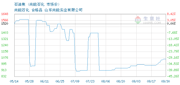 07月10日尚能石化石油焦为900元