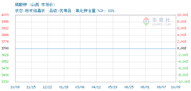 07月14日山西关于硫酸钾的报价为3700元/吨。硫酸钾的规格:状态:粉末结晶状 ;品级:优等品 ;氧化钾含量/%≥: 50%;。该报价有效期为3天。报价提供方:山东汉邦科学仪器有限公司。