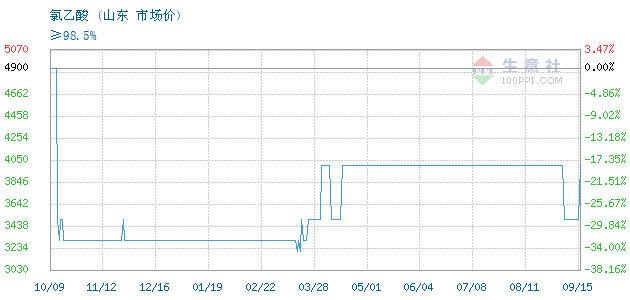 07月16日山东关于氯乙酸的报价为4000元/吨。氯乙酸的规格:≥98.5%。该报价有效期为3天。报价提供方:山东恒睿化工有限公司。
