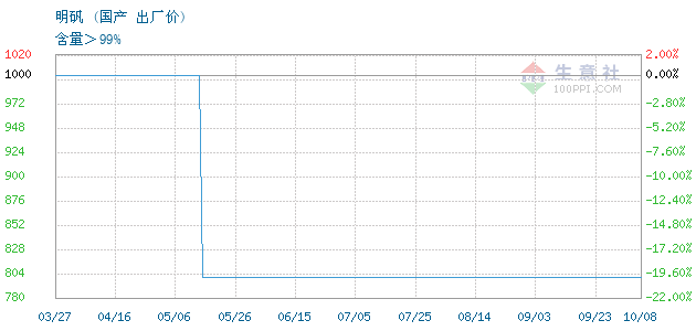 07月17日国产关于明矾的报价为800元/吨。明矾的规格:含量>99%。该报价有效期为3天。报价提供方:河南汇亿海净水材料有限公司。