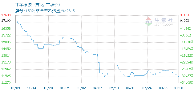07月17日吉化关于丁苯橡胶的报价为11950元/吨。丁苯橡胶的规格:牌号:1502;结合苯乙烯量/%:23.5。该报价有效期为3天。报价提供方:陕西双力化工有限责任公司。