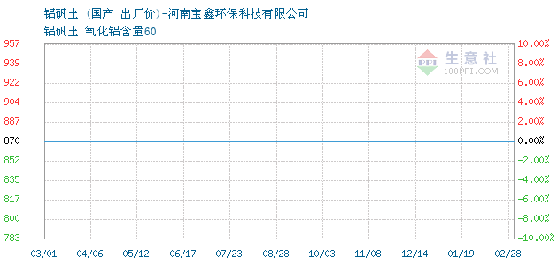 10月17日国产关于铝矾土的报价为870元/吨。铝矾土的规格:铝矾土 氧化铝含量60。该报价有效期为3天。报价提供方:河南宝鑫环保科技有限公司。