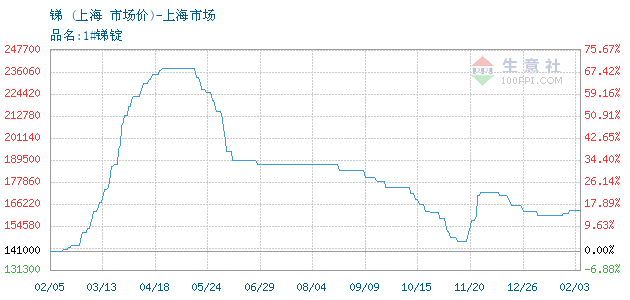 10月17日上海市场关于锑(1#)的报价为166000元/吨。锑(1#)的规格:品名:1#锑锭。该报价有效期为1天。报价提供方:上海市场。