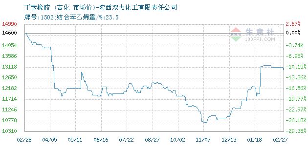 10月17日吉化关于丁苯橡胶的报价为11400元/吨。丁苯橡胶的规格:牌号:1502;结合苯乙烯量/%:23.5。该报价有效期为3天。报价提供方:陕西双力化工有限责任公司。