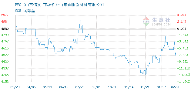 10月17日山东信发化工有限公司关于PVC的报价为4500元/吨。PVC的规格:SG5 优等品。该报价有效期为3天。报价提供方:山东森鹏新材料有限公司。