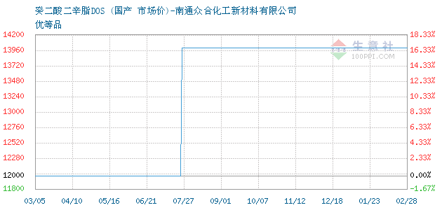 10月17日国产关于癸二酸二辛脂DOS的报价为14000元/吨。癸二酸二辛脂DOS的规格:优等品。该报价有效期为3天。报价提供方:南通众合化工新材料有限公司。
