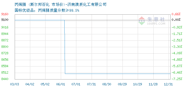 10月18日斯尔邦石化丙烯腈为8500元