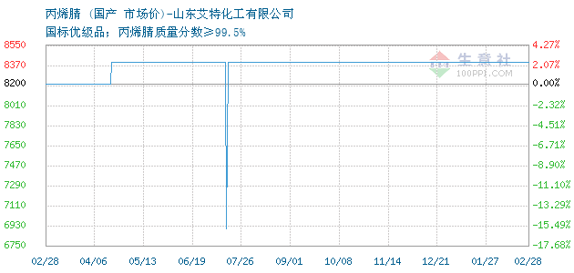 10月18日国产关于丙烯腈的报价为8400元/吨。丙烯腈的规格:国标优级品;丙烯腈质量分数≥99.5%。该报价有效期为7天。报价提供方:山东艾特化工有限公司。