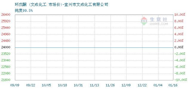 10月20日文成化工关于环戊酮的报价为24000元/吨。环戊酮的规格:纯度99.5%。该报价有效期为3天。报价提供方:宜兴市文成化工有限公司。