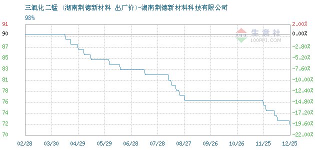 10月22日湖南荆德新材料关于三氧化二锰的报价为77元/千克。三氧化二锰的规格:98%。该报价有效期为7天。报价提供方:湖南荆德新材料科技有限公司。
