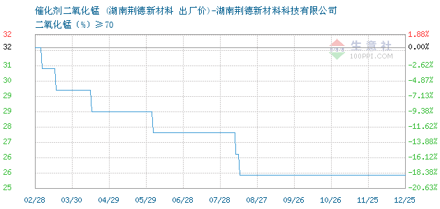 10月22日湖南荆德新材料关于二氧化锰的报价为26元/公斤。二氧化锰的规格:二氧化锰(%)≥70 。该报价有效期为7天。报价提供方:湖南荆德新材料科技有限公司。