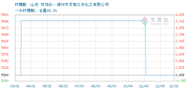 10月23日山东关于柠檬酸的报价为5500元/吨。柠檬酸的规格:一水柠檬酸,含量99.8%。该报价有效期为7天。报价提供方:漳州市芗城三安化工有限公司。
