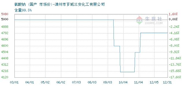 10月23日国内多品牌关于氯酸钠的报价为4200元/吨。氯酸钠的规格:含量99.5%。该报价有效期为3天。报价提供方:漳州市芗城三安化工有限公司。