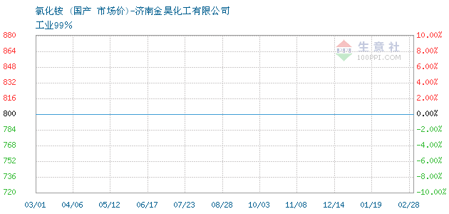 10月27日国产关于氯化铵的报价为800元/吨。氯化铵的规格:工业99%。该报价有效期为3天。报价提供方:济南金昊化工有限公司。
