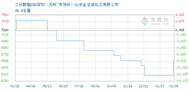 10月27日元利关于二价酸酯DBE溶剂的报价为6700元/吨。二价酸酯DBE溶剂的规格:99.9含量 。该报价有效期为3天。报价提供方:山东金生润化工有限公司。