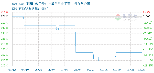 10月27日福建关于pvp的报价为22000元/吨。pvp的规格:K30 有效物质含量:95%以上。该报价有效期为3天。报价提供方:上海昌昱化工新材料有限公司。