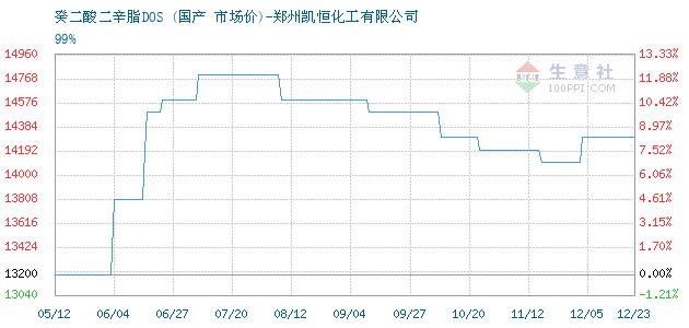 10月27日国产关于癸二酸二辛脂DOS的报价为14200元/吨。癸二酸二辛脂DOS的规格:99%。该报价有效期为3天。报价提供方:郑州凯恒化工有限公司。