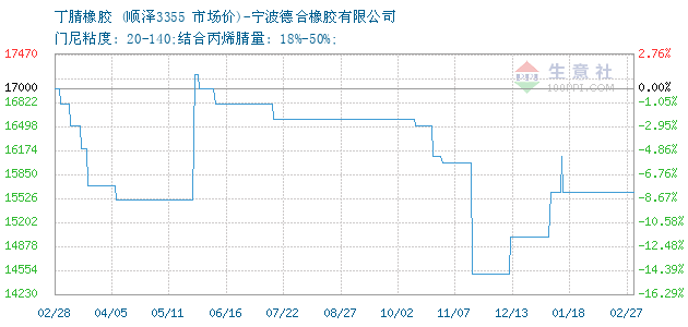 10月27日顺泽3355关于丁腈橡胶的报价为16100元/吨。丁腈橡胶的规格:门尼粘度: 20-140;结合丙烯腈量: 18%-50%;。该报价有效期为3天。报价提供方:宁波德合橡胶有限公司。