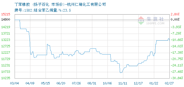 10月27日扬子石化关于丁苯橡胶的报价为11550元/吨。丁苯橡胶的规格:牌号:1502;结合苯乙烯量/%:23.5。该报价有效期为3天。报价提供方:杭州仁瑞化工有限公司。