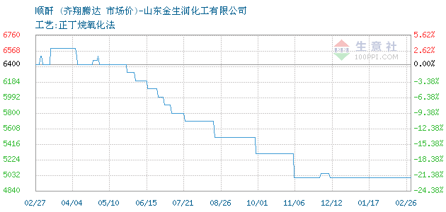 11月02日淄博齐翔腾达化工股份有限公司关于顺酐的报价为5300元/吨。顺酐的规格:工艺:正丁烷氧化法。该报价有效期为3天。报价提供方:山东金生润化工有限公司。