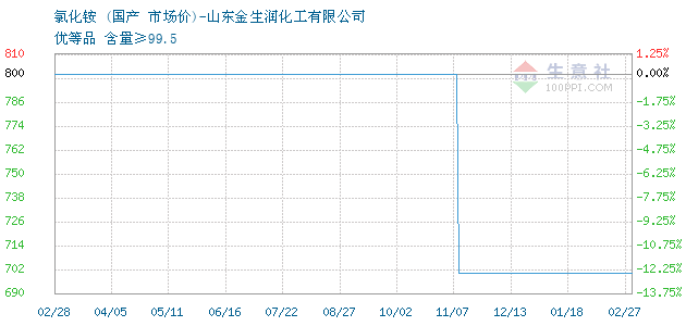 11月02日国产关于氯化铵的报价为800元/吨。氯化铵的规格:优等品 含量≥99.5。该报价有效期为3天。报价提供方:山东金生润化工有限公司。