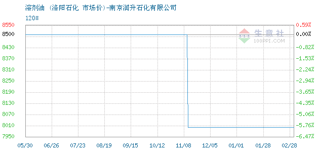 11月03日洛阳石化关于溶剂油的报价为8500元/吨。溶剂油的规格:120# 。该报价有效期为3天。报价提供方:南京润升石化有限公司。