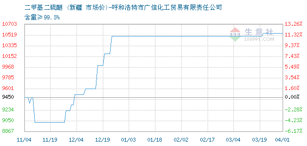 11月12日新疆关于二甲基二硫醚的报价为9020元/吨。二甲基二硫醚的规格:含量≥99.5%。该报价有效期为7天。报价提供方:呼和浩特市广信化工贸易有限责任公司。