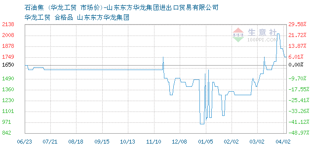 11月19日华龙工贸关于石油焦的报价为1600元/吨。石油焦的规格:华龙工贸 合格品 山东东方华龙集团 。该报价有效期为3天。报价提供方:山东东方华龙集团进出口贸易有限公司。