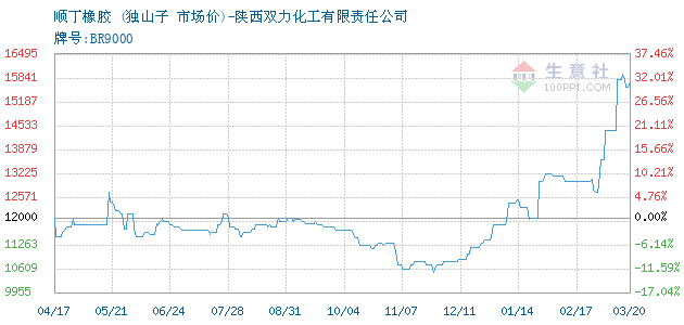 12月05日独山子关于顺丁橡胶的报价为10800元/吨。顺丁橡胶的规格:牌号:BR9000。该报价有效期为3天。报价提供方:陕西双力化工有限责任公司。