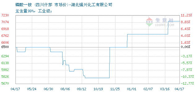12月11日四川什邡关于磷酸一铵的报价为6500元/吨。磷酸一铵的规格:主含量99%,工业级;。该报价有效期为3天。报价提供方:湖北强兴化工有限公司。