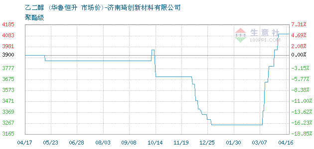 12月16日华鲁恒升关于乙二醇的报价为3380元/吨。乙二醇的规格:聚酯级。该报价有效期为3天。报价提供方:济南琦创新材料有限公司。