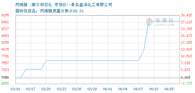 12月16日斯尔邦石化关于丙烯腈的报价为7700元/吨。丙烯腈的规格:国标优级品;丙烯腈质量分数≥99.5%。该报价有效期为3天。报价提供方:青岛盛泽化工有限公司。