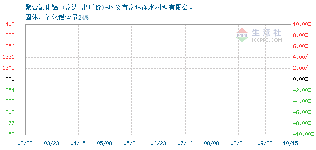 09月03日富达关于聚合氯化铝的报价为1200元/吨。聚合氯化铝的规格:固体,氧化铝含量24%。该报价有效期为3天。报价提供方:巩义市富达净水材料有限公司。
