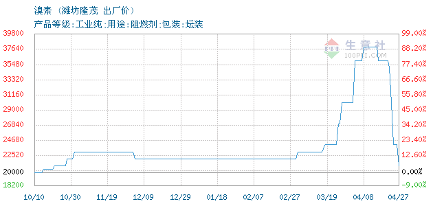 11月12日潍坊隆茂化工有限公司关于溴素的报价为32500元/吨。溴素的规格:产品等级:工业纯;用途:阻燃剂;包装:坛装。该报价有效期为3天。报价提供方:潍坊隆茂化工有限公司。