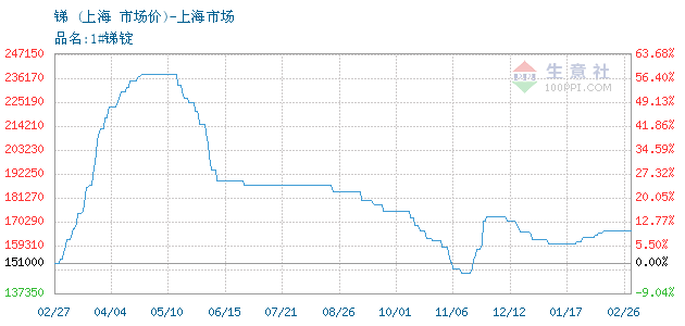 02月22日上海市场关于锑(1#)的报价为54500元/吨。锑(1#)的规格:品名:1#锑锭。该报价有效期为1天。报价提供方:上海市场。