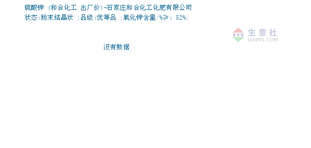 03月02日石家庄和合化工化肥有限公司关于硫酸钾的报价为2850元/吨。硫酸钾的规格:状态:粉末结晶状 ;品级:优等品 ;氧化钾含量/%≥: 52%;。该报价有效期为3天。报价提供方:石家庄和合化工化肥有限公司。
