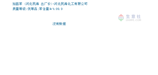 06月04日河北民海关于加氢苯的报价为7700元/吨。加氢苯的规格:质量等级:优等品;苯含量≧%:99.9。该报价有效期为3天。报价提供方:河北民海化工有限公司。