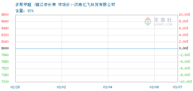 08月16日镇江李长荣关于多聚甲醛的报价为6000元/吨。多聚甲醛的规格:含量:92%。该报价有效期为3天。报价提供方:济南亿飞科贸有限公司。