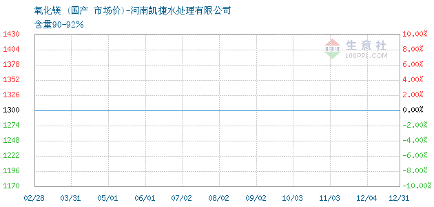 02月04日国产关于氧化镁的报价为1900元/吨。氧化镁的规格:含量90-92%。该报价有效期为3天。报价提供方:河南凯捷水处理有限公司。
