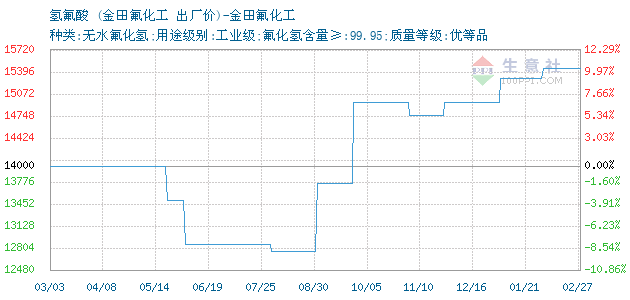 02月25日金田氟化工氢氟酸为13000元