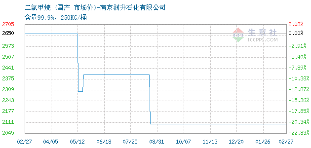 03月15日国产关于二氯甲烷的报价为5500元/吨。二氯甲烷的规格:含量99.9%,250KG/桶。该报价有效期为1天。报价提供方:南京润升石化有限公司。