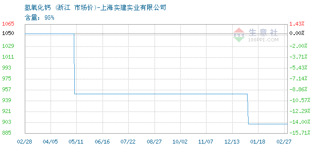 03月22日浙江关于氢氧化钙的报价为1200元/吨。氢氧化钙的规格:含量:95% 。该报价有效期为1天。报价提供方:上海实建实业有限公司。